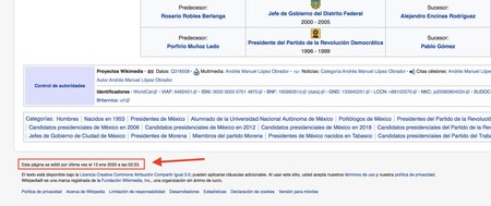 De hecho, la página de “Andrés Manuel López Obrador” en Wikipedia recibió su última modificación este 13 de enero a las 02:33, aunque no hay detalles de qué fue lo que se modificó o quién fue el responsable.